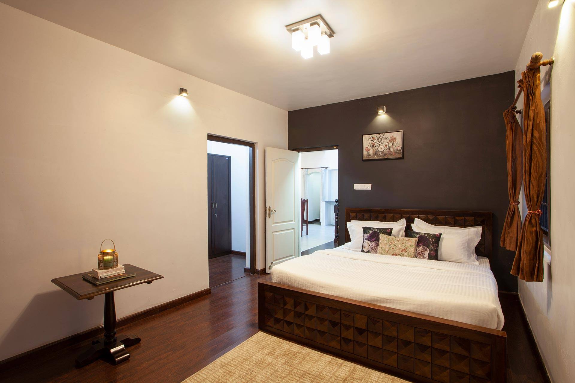 As you enter the property, the cosy and contemporary interiors immediately catch your eye. The lounge areas are the perfect spot to unwind and recharge, with comfortable seating and stunning views from the balconies. For those who crave immersive experiences, Peak Point has you covered. The BBQ and bonfire area is the perfect spot to gather with friends and family for a fun-filled evening of food and laughter. The crackling fire and mouth-watering aromas will transport you to a world of pure relaxation and enjoyment. And if that's not enough, the delectable spread of authentic home-cooked South Indian meals will your taste buds craving for more. With an abundance of immersive experiences for each and every one, this charming abode is bound to leave you with a trove full of memories.